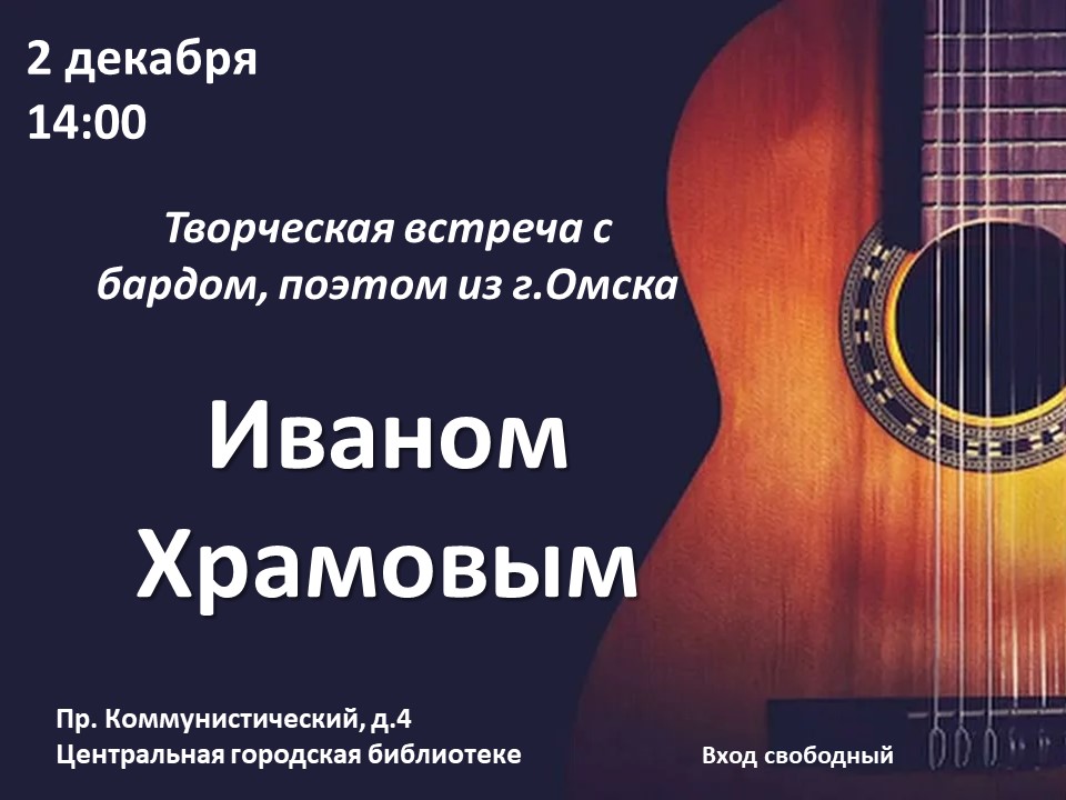 Приглашаем всех поклонников бардовской песни на творческий вечер с Иваном Храмовым, музыкантом и поэтом из города Омска.