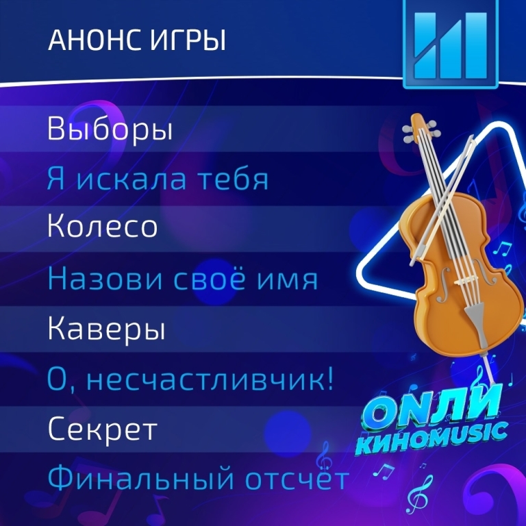 В игре будет 8 раундов по МУЗЫКЕ и КИНО. А именно:
