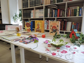 В рамках Всероссийской акции «Культурная суббота. Сказки народов России» с 10 по 27 июля в библиотеке была оформлена выставка-инсталляция «Волшебный мир фольклора», возле которой проходили обзоры и беседы.