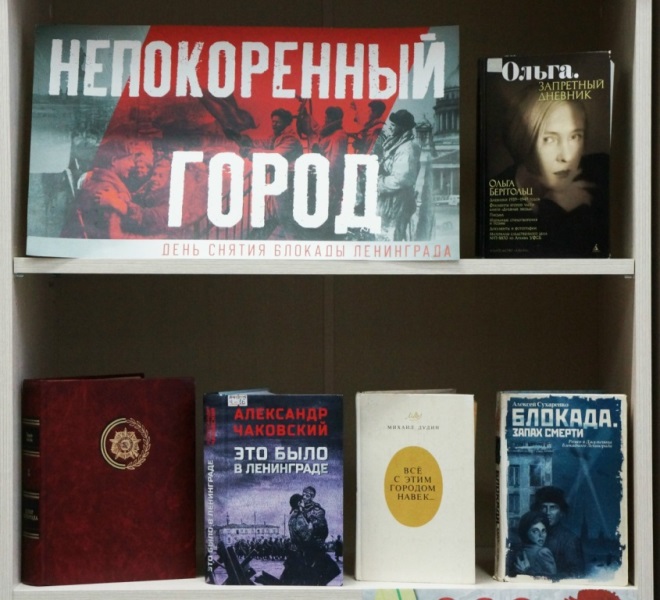 27 января в нашей стране отмечают День воинской славы России – день полного освобождения Ленинграда от фашистской блокады. К этой дате в Центральной городской библиотеке открылась книжная выставка «Непокорённый город».
