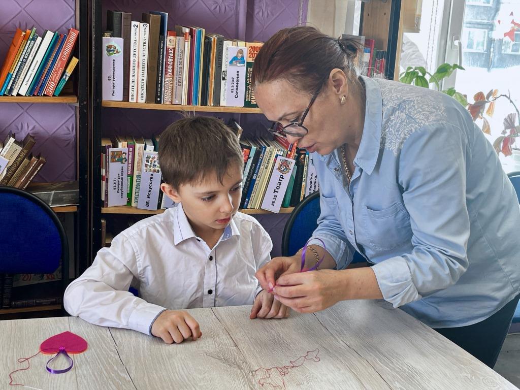 Ребята посетили мастер-класс, проходящий в библиотеке «Дружная семейка» в преддверии празднования 8 Марта. Второклассники работали с ниткой, иголкой, фетром, синтепоном, стразами и ленточками. Детям озвучили технику безопасности по работе. Ребята старались справляться как самостоятельно, так и помогая друг другу.