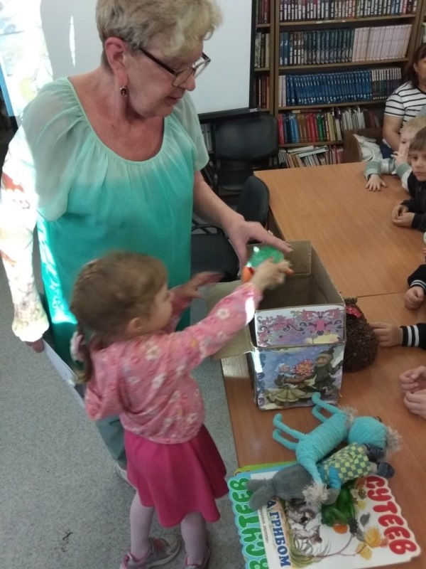 Мероприятие началось с того, что злая, вредная Дедюка украла главную Книгу в библиотеке. Чтобы попасть в волшебную страну «Сутеевка» и найти Книгу ребятам пришлось выполнить ряд заданий. Юные читатели вспоминали литературных героев по предметам из «Волшебного сундучка», угадывали сказку по иллюстрациям, участвовали в викторине. Узнали о жизни и творчестве Сутеева. Поиграли в игры «Доскажи словечко», «Чудесная шляпа», «Сказочная пантомима». В общем путь ребят к цели был труден и опасен. Книга общими усилиями была спасена, а Дедюка наказана. Живые, добрые, смешные герои произведений Сутеева никого не оставили равнодушными. А простые истины о дружбе, доброте и взаимопомощи нашли отклик в сердцах маленьких читателей.