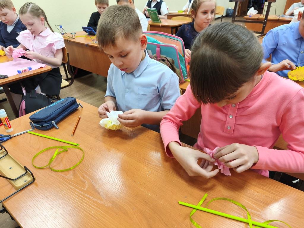Мастер-класс «Букет для мамы» для учащихся 2 «А» класса Гимназии №24 провели сотрудники библиотеки «Центр национальных культур» 3 марта. Мероприятие состоялось в преддверии одного из самых любимых праздников – 8 марта.