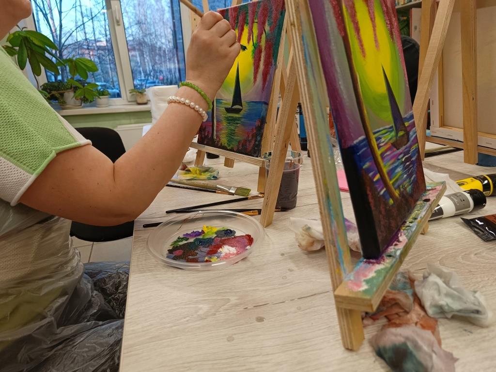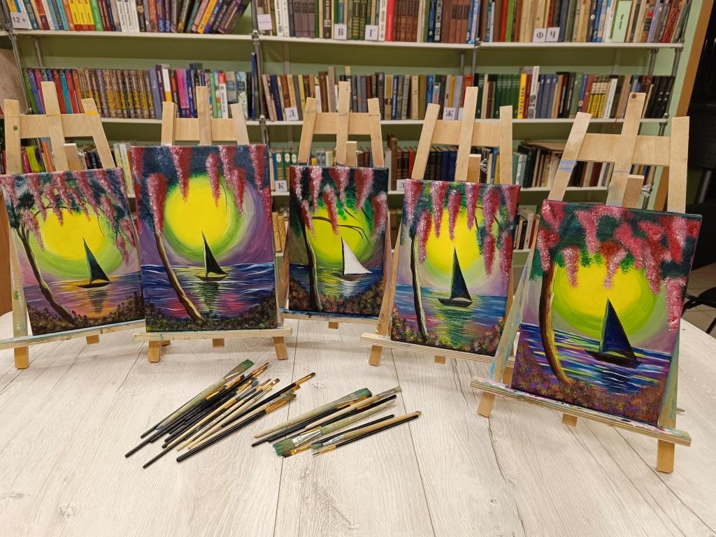 Мастер-класс по правополушарному рисованию «Парусник на закате» состоялся в библиотеке «Центр национальных культур» 28 апреля.
