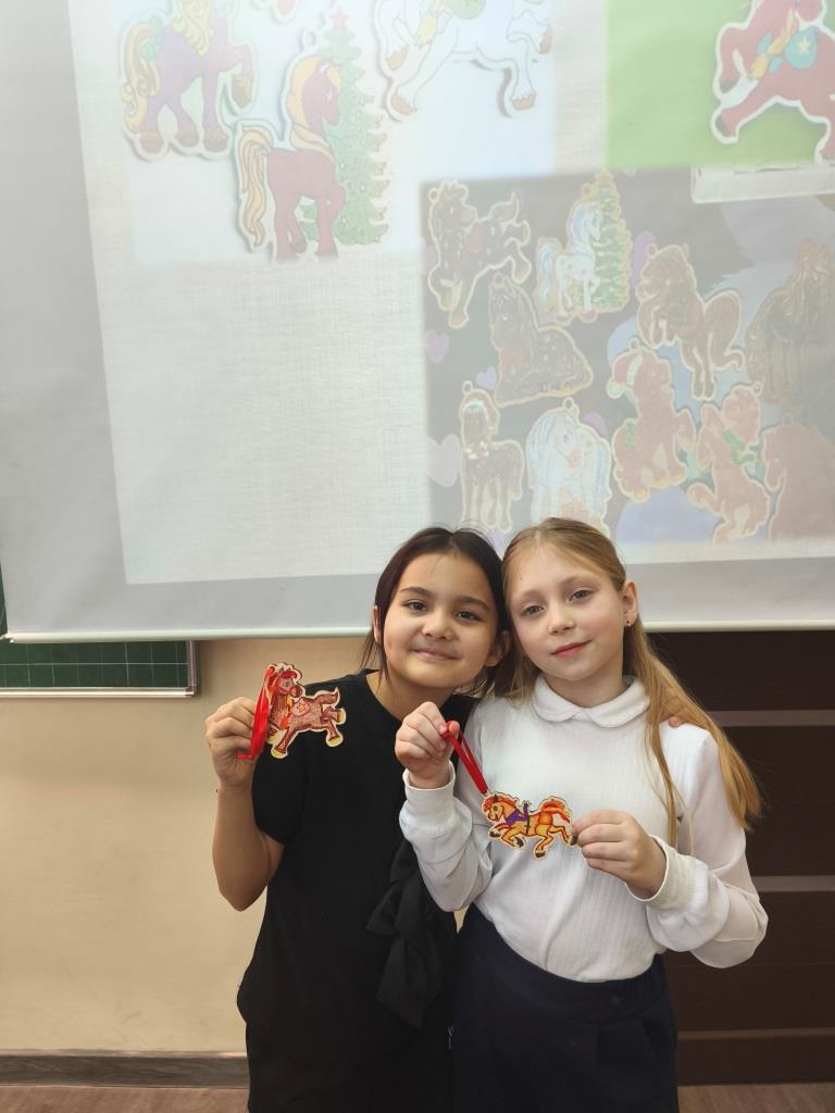 В начале учащимся рассказали о том, когда и кем была введена традиция отмечать Новый год в ночь с 31 декабря на 1 января, какие существуют обычаи и приметы, как менялся внешний вид праздничных украшений с течением времени. Также ребятам рассказали, что 2026 год по восточному календарю – год Красной Огненной Лошади, и чем он будет особенным. Окунувшись в атмосферу предновогодней сказки, мальчишки и девчонки принялись раскрашивать деревянных лошадок. Красный, желтый и оранжевый цвета стали основными, так как они символизируют стихию огня и энергию года Лошади. Каждая лошадка получилась по-своему уникальной: яркой, нарядной и полной новогоднего очарования.