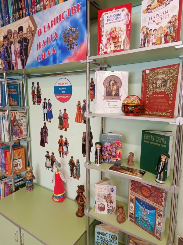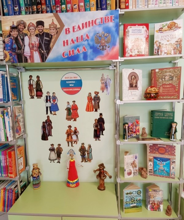 В связи с этим в библиотеке «Центр национальных культур» открылась годовая выставка «В единстве наша сила».