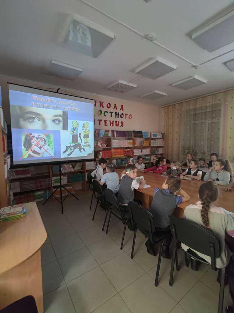 Литературный час по рассказам Ирины Пивоваровой для учеников 3 «В» МБОУ «Гимназия №6» состоялся в Модельной городской детской библиотеке 5 декабря.
