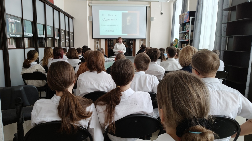 С творчеством Н.С. Лескова на примере рассказа «Дурачок» познакомились шестиклассники на встрече в Центральной городской библиотеке 12 марта. Школьники вместе с библиотекарем размышляли над судьбой главного героя, который несмотря на все жизненные трудности, сохраняет доброту и веру в чудо.