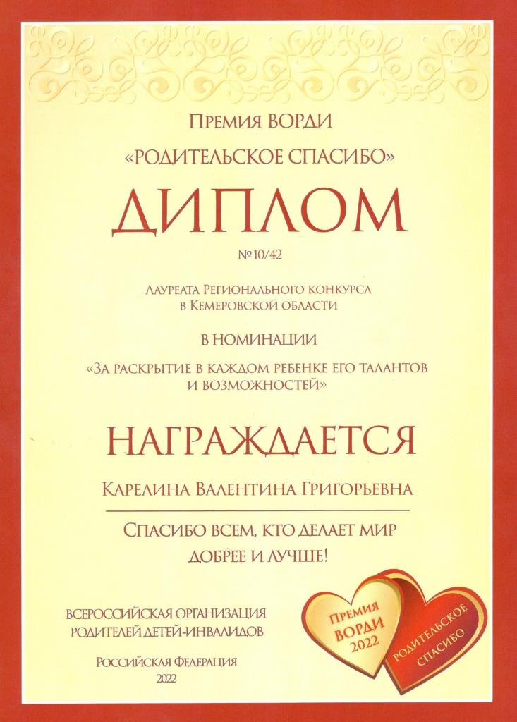 Всероссийская премия «Родительское спасибо» предназначена для награждения граждан Российской Федерации и организаций, которые внесли существенный вклад в построение системы помощи детям и взрослым с ОВЗ и инвалидностью и их семьям.