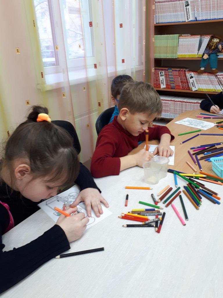 Раскраски «Мы в библиотеке», которые выполнили ребята, стали завершением экскурсии.