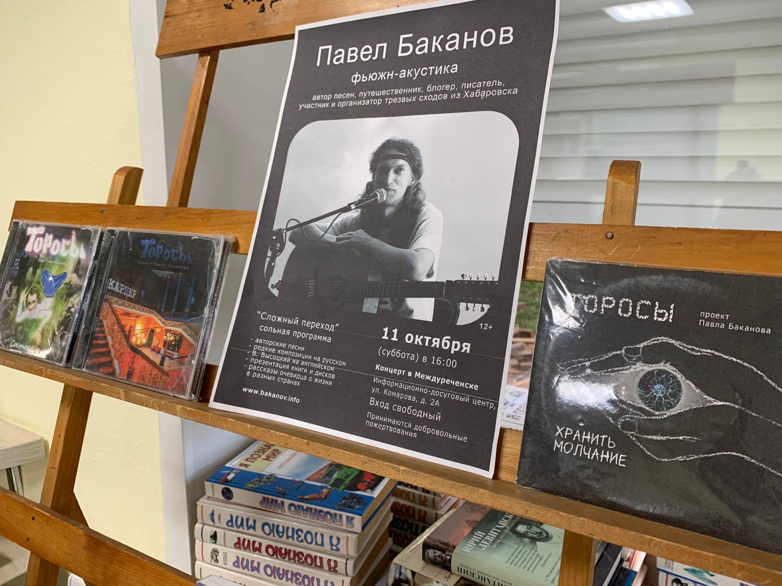 С таким интересным концертом в Информационно-досуговом центре выступил автор, исполнитель, блогер, писатель и путешественник – Павел Баканов. Музыкант представил на суд зрителей свою авторскую программу «Сложный переход».