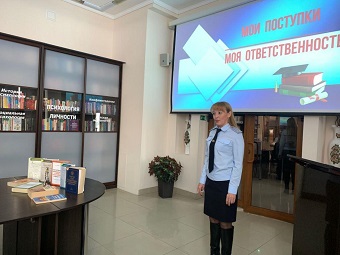 11 ноября в Центральной городской библиотеке прошел правовой час «Мои поступки. Моя ответственность». Участниками мероприятия стали ученики 11«б» класса школы №22 (руководитель Елизарова М.А.).
