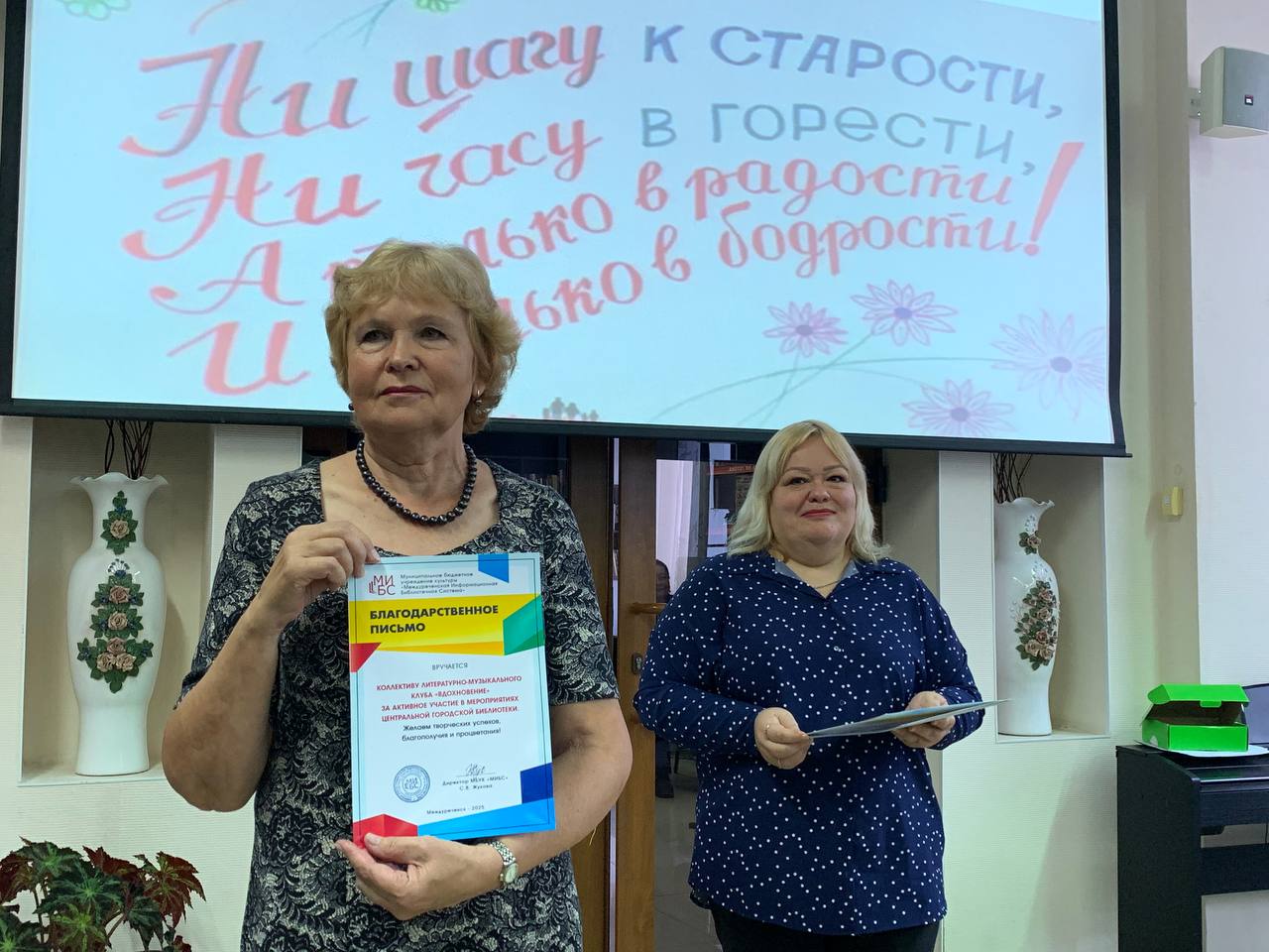 Фестиваль завершился торжественным вручением благодарственных писем от Междуреченской Информационной Библиотечной Системы. Награды получили общественные организации, любительские клубы, работающие с людьми старшего поколения, а также волонтеры.