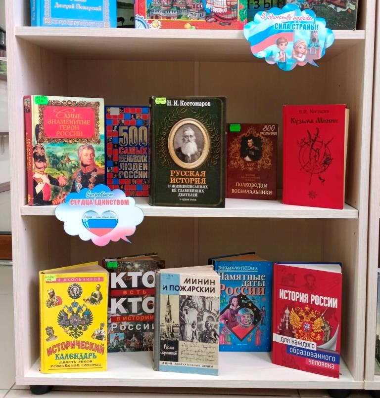 День народного единства – это дань памяти нашей славной истории. А книги – это хранители истории и культуры. Выставка посвящена историческому подвигу русского народа, преодолевшего смертельную угрозу внешней агрессии и внутренние раздоры. Здесь вы найдете уникальные публикации, посвящённые легендарным фигурам – князю Дмитрию Пожарскому и земскому старосте Кузьме Минину, сыгравшим решающую роль в освобождении столицы и возрождении российской государственности.
