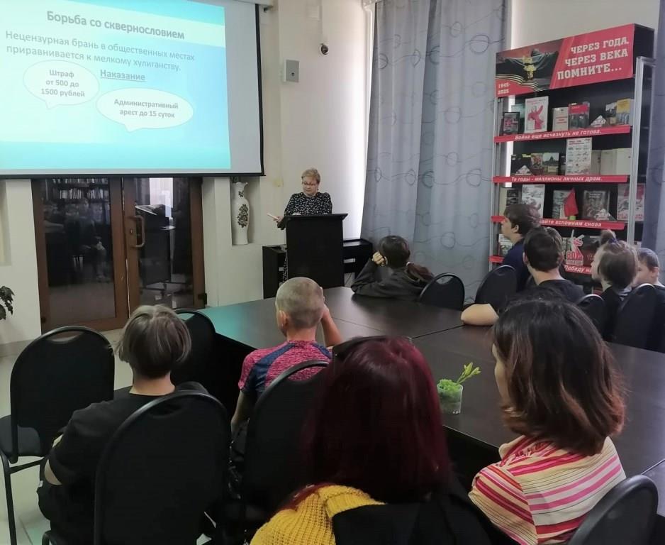 Подростки из МКУ «Социально-реабилитационный центр для несовершеннолетних» познакомились с историей возникновения бранных слов на Руси, обсудили правовой аспект: какое наказание влечёт нецензурная брань в общественных местах.