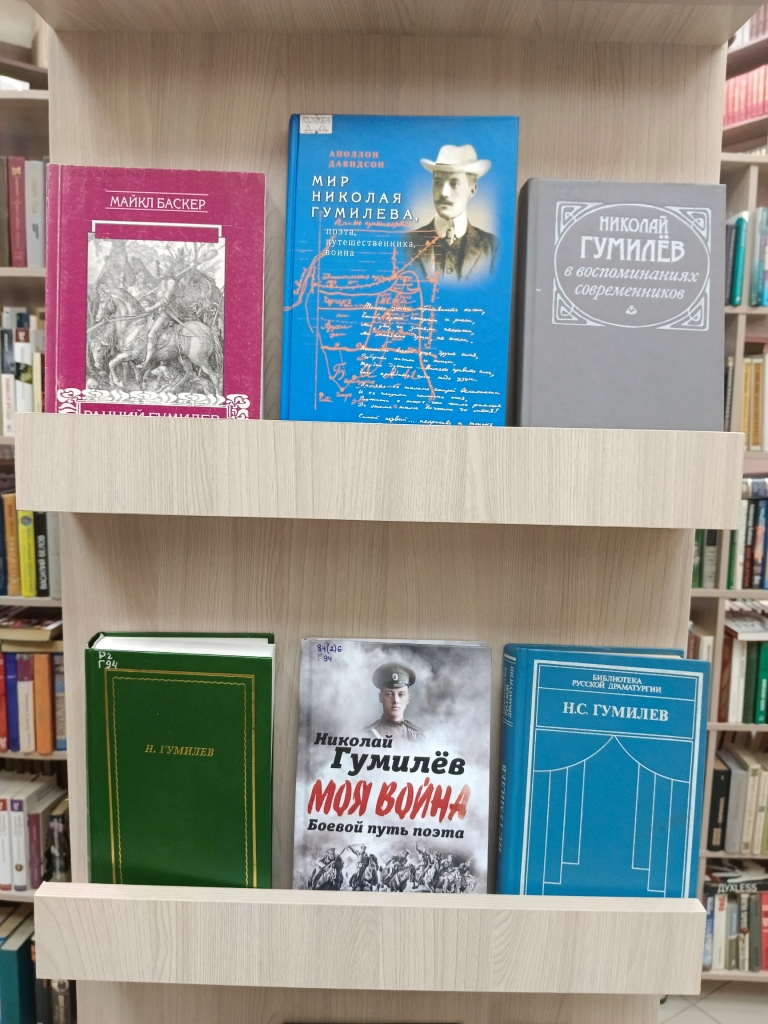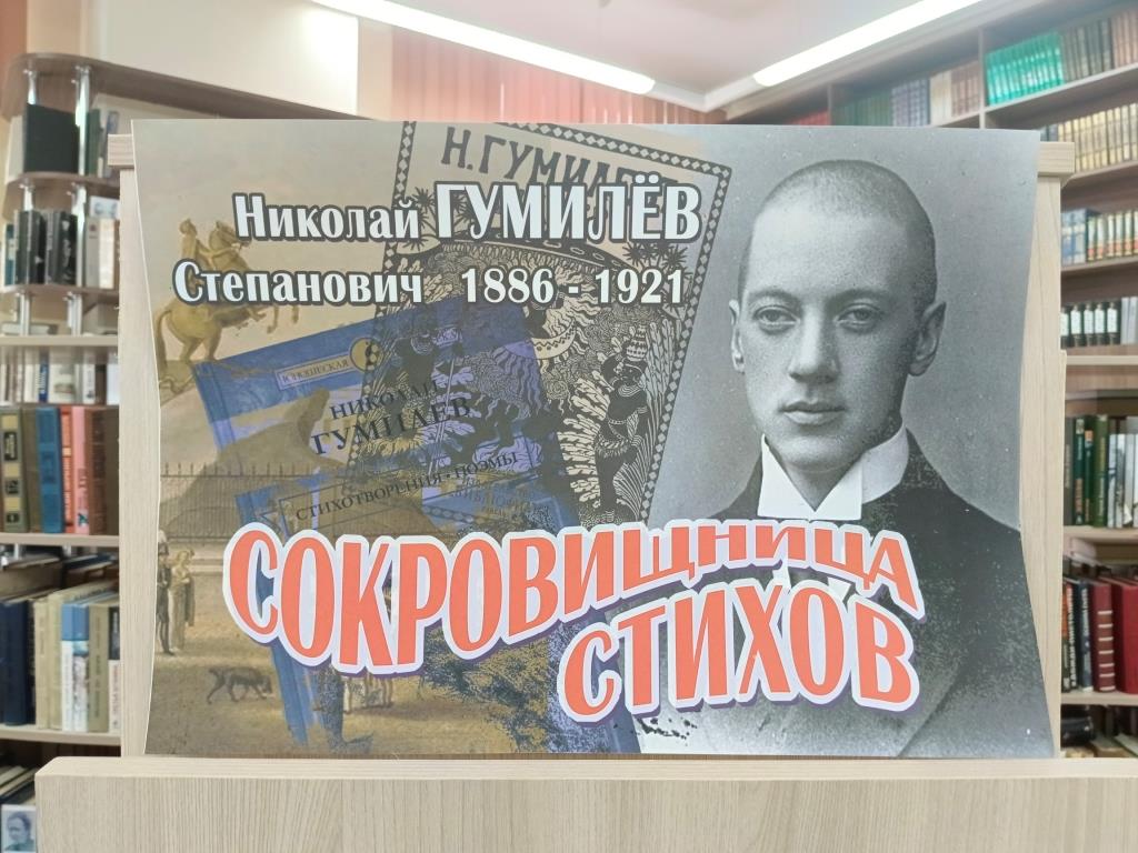 Книжная выставка, посвящённая 140-летию со дня рождения русского поэта, переводчика, литературного критика Николая Степановича Гумилёва (1886-1921), оформлена в Центральной городской библиотеке.