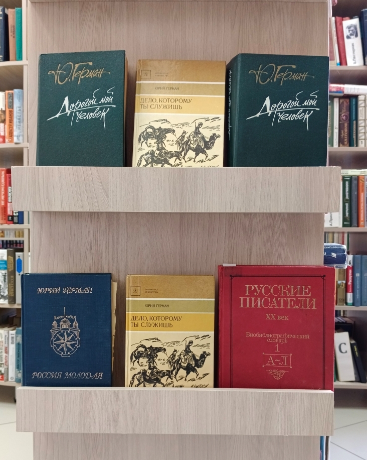 В рамках цикла выставок о писателях-фронтовиках к 80-летию Победы в Великой Отечественной войне в Центральной городской библиотеке открылась книжная выставка-портрет «Всегда верил в человека», посвящённая творчеству юбиляра Юрия Павловича Германа. В этом году 4 апреля исполняется 115 лет со дня его рождения (1910-1967).