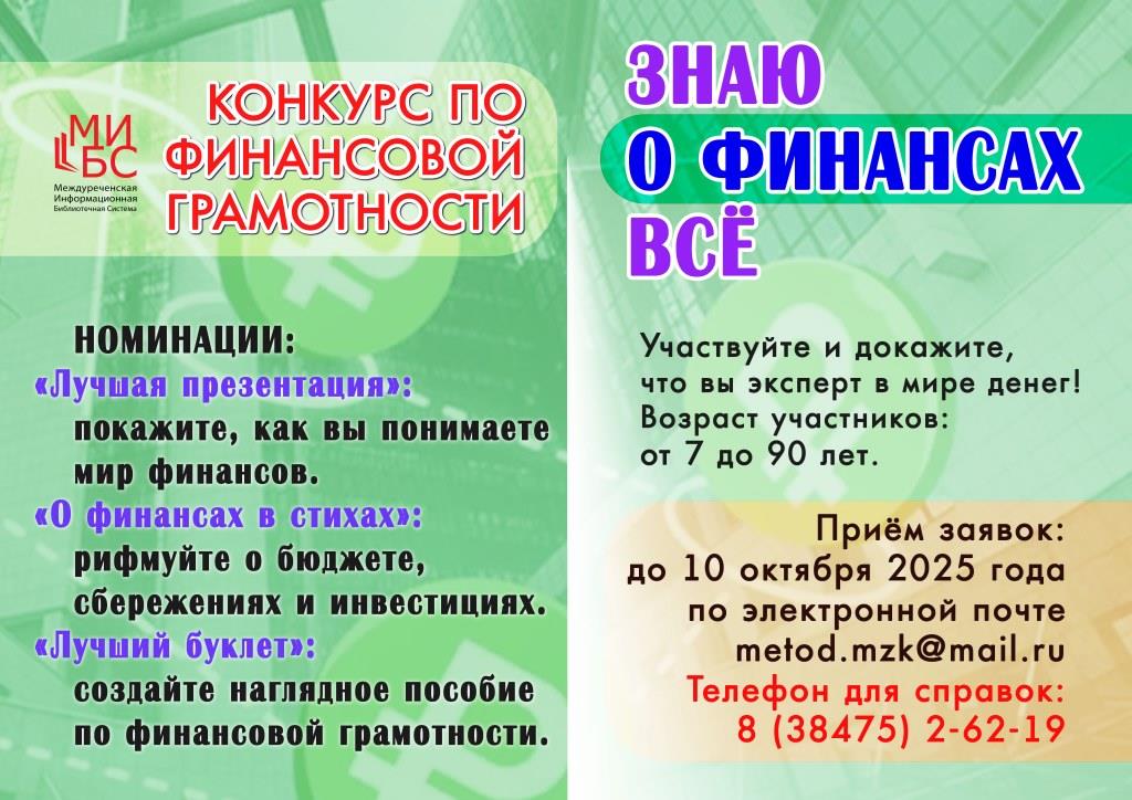 Мы приглашаем всех желающих, от самых юных знатоков до мудрых экспертов, принять участие в захватывающем конкурсе финансовой грамотности «Знаю о финансах всё»!