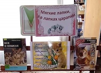 Книжная выставка «Мягкие лапки, а в лапках царапки», к Международному дню кошек открылась в библиотеке «Притомская».