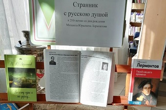 Книжная выставка «Странник с русскою душой» к 210-летию со дня рождения Михаила Юрьевича Лермонтова, великого русского поэта.