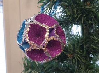 В финале под чутким руководством опытного мастера Л.И. Водяновой в качестве теплого подарка на память участники своими руками сделали елочную игрушку «Шарик из конусов» из глитерного фоамирана.