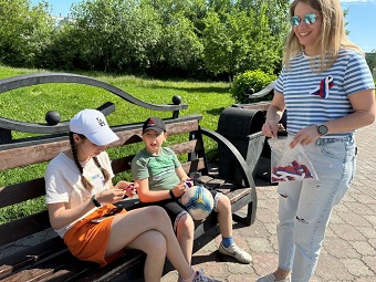 Патриотическую акцию «День России – праздник всей страны» провели сотрудники библиотеки «Молодежная» на улицах Западного района Междуреченска 10 июня.
