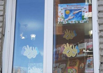 Книжная выставка в окне «В книжном царстве доброты» оформлена в библиотеке «Семейного чтения».