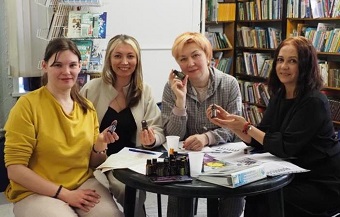 Встреча-тренинг с детским психотерапевтом Евгенией Андреевной Каракуловой состоялась в библиотеке «Дружная семейка» для учащихся МБОУ «Гимназия № 24» 22 апреля.