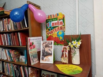 Книжная выставка ко Дню учителя оформлена в читальном зале библиотеки «Дружная семейка».
