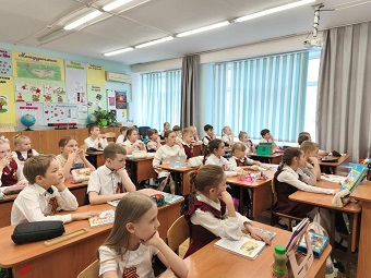 В библиотеке «Центр национальных культур» продолжается работа с учащимися начальных классов в рамках программы «Школа радостного чтения». На этот раз литературный урок «Весёлый багаж Маршака» прошел для учеников 1 класса Гимназии №24.
