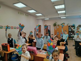 В преддверии Международного женского дня, учащиеся первого класса Гимназии №24 создали настоящие букеты для своих мам.