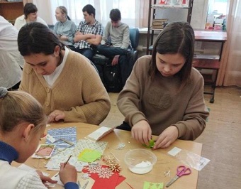 Мастер-класс по изготовлению «Новогодней открытки» в технике скрапбукинг прошел в Библиотечном информационно-досуговом центре поселка Чебал-Су 19 декабря.