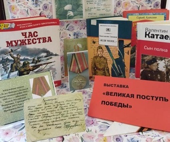 Книжная выставка «Великая поступь Победы», посвященная Дню Победы в Великой Отечественной войне, работает в Библиотечном информационно-досуговом центе поселка Чебал-Су.