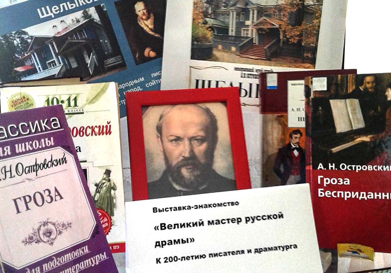 Выставка посвящена к 200-летию великого русского писателя и драматурга Н.А.Островского, автора многих пьес и произведений, раскрывающих нравственные ценности человека и обличающих пороки.