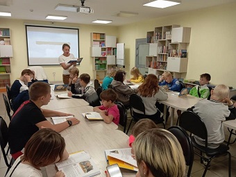 В Информационно-досуговом центре продолжаются еженедельные встречи с ребятами из летнего лагеря Социально-реабилитационного центра для несовершеннолетних.