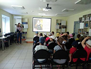 Сотрудники Информационно-досугового центра Жукова Алёна Владимировна и Гуреева Олеся Александровна рассказали об актёрах участвовавших в ВОВ, а также показали отрывки из самых известных советских военных фильмов.