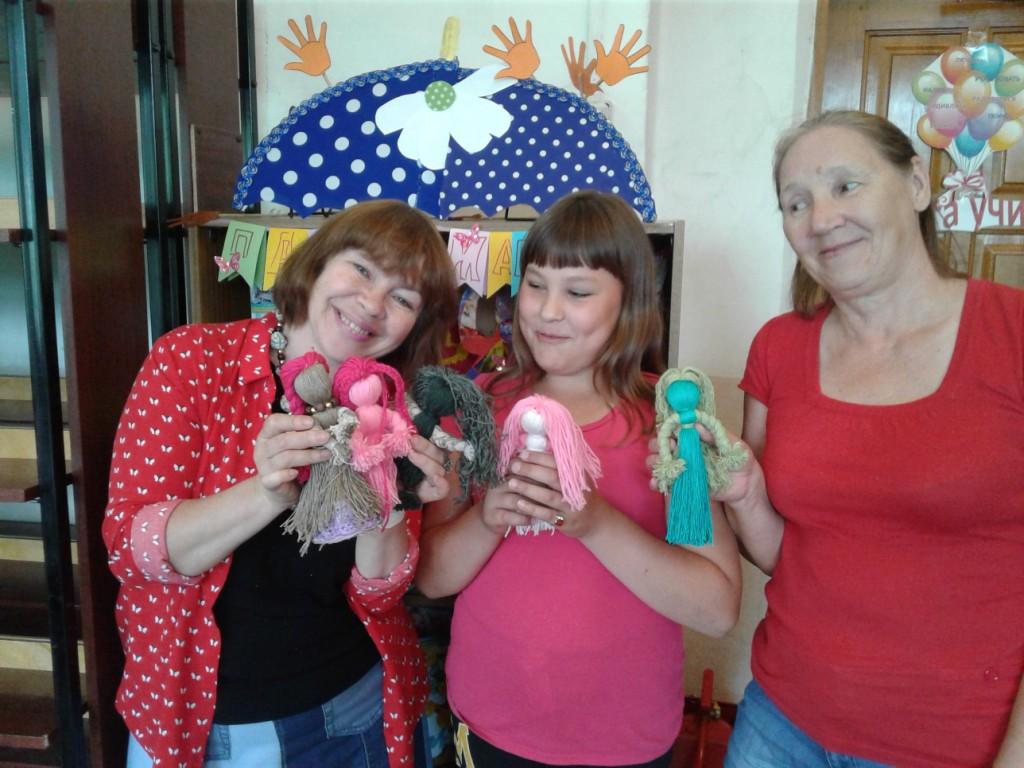 В мероприятии приняла участие семья Тесаловских: мама, бабушка и дочка. Всей семьей трудились над изготовлением куклы из разных ниток. У каждой участницы получилась своя неповторимая берегиня. Придумали имя каждой, и все остались довольны своей творческой работой.