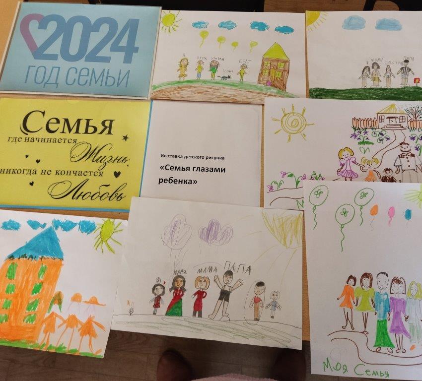 Выставка детского рисунка, посвященная Международному дню семьи.