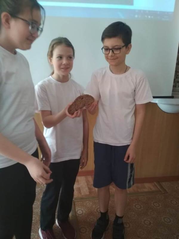 Не забыли вспомнить и дневник Тани Савичевой. Ребята узнали о ценности кусочка блокадного хлеба. Кусочек в 125 грамм, он был тоненький, как кленовый листочек. Дети читали стихотворения «Непокоренный Ленинград», «Горбушка хлеба».