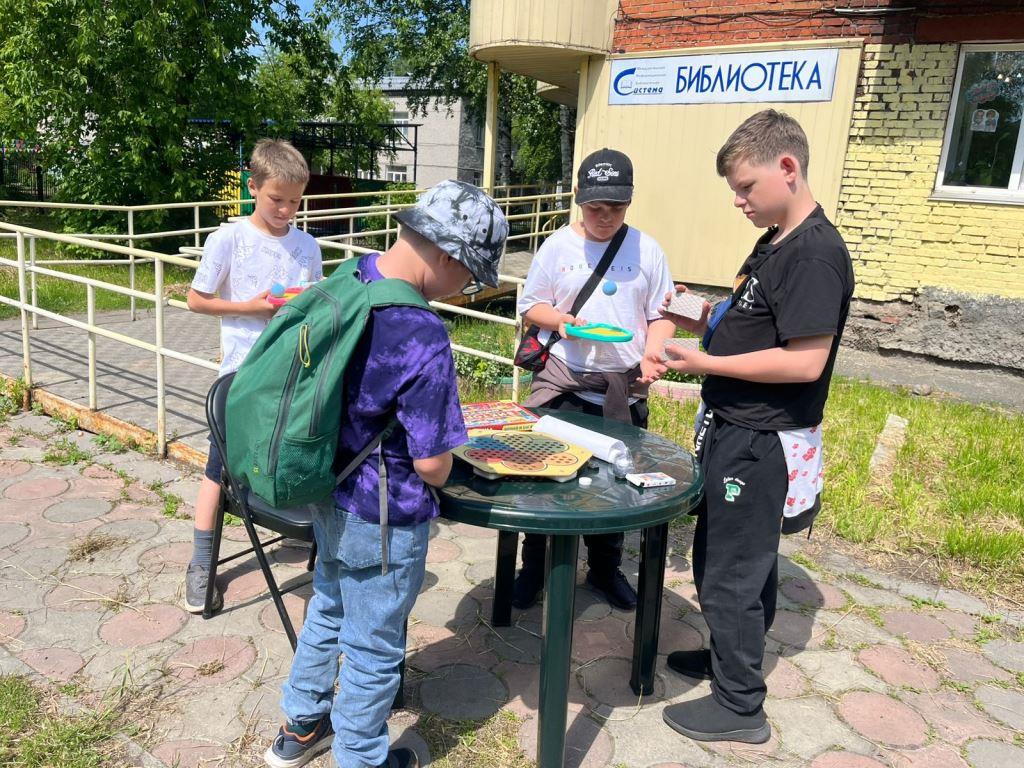 На игровой летней площадке для читателей любого возраста была представлена ретро игра «ромашка», детские теннисные ракетки, классики и совершенно новые игры: головоломки, карточные настольные игры на логику, лабиринты.