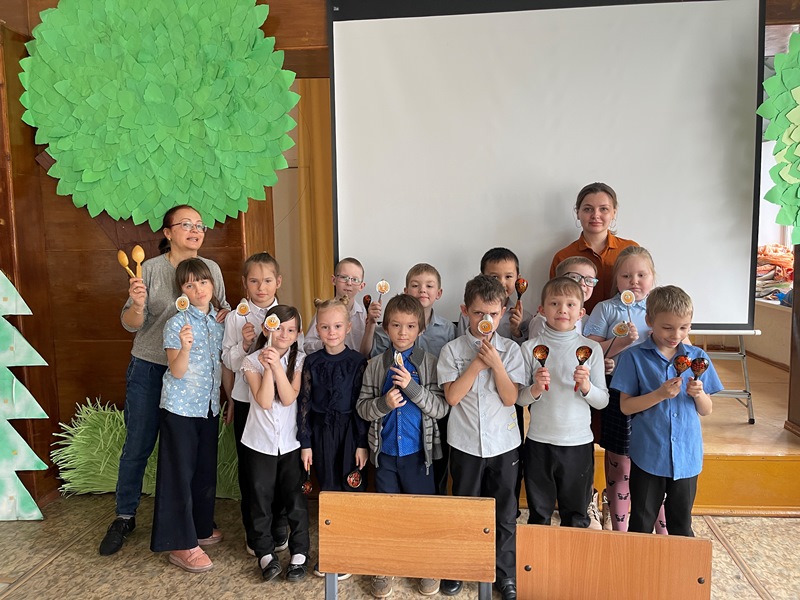Участники программы смогли не только услышать историю одного из символов России, но также и прикоснуться к нему. Дети с удовольствием рассматривали представленные виды ложек: от деревянной до металлической, создавали музыку, используя музыкальные ложки, а также научились играть в театр, используя столовый прибор. Ребята поняли, как многообразно использование ложки и узнали, насколько трудоемка работа по её изготовлению.