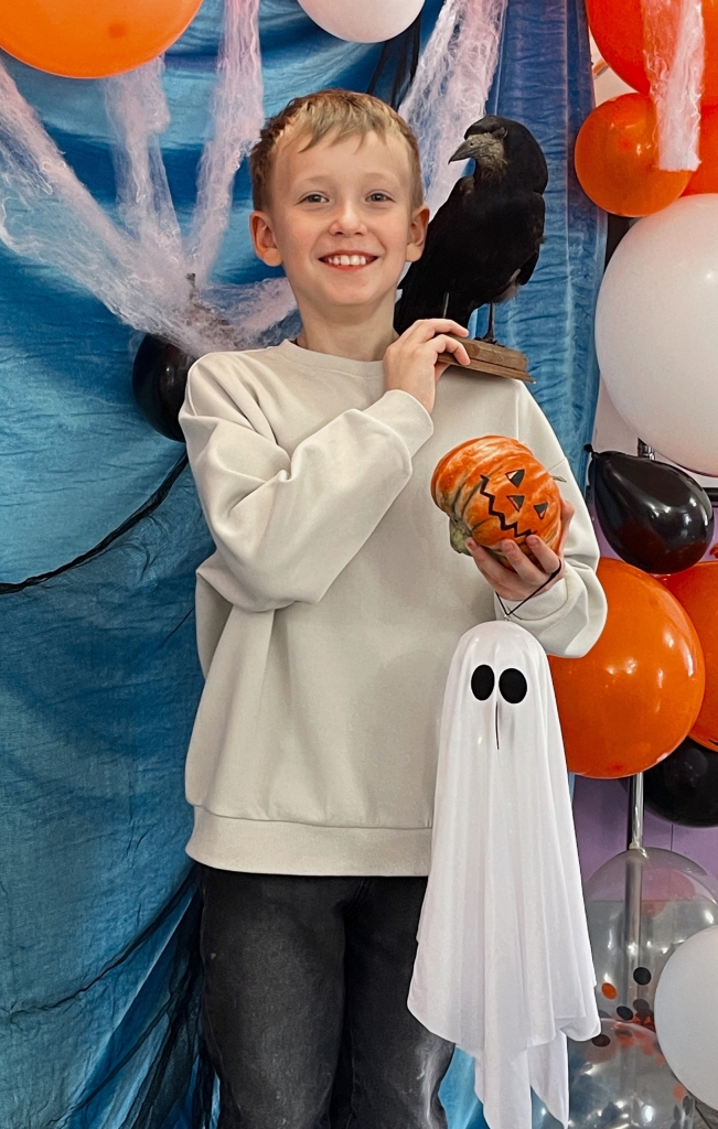 Персонажей наших гостей встречали верные хранители волшебного уголка: загадочный Ворон Аркадий, улыбчивая Тыква Джек, причудливая паутина с пауками и мерцающие шары.