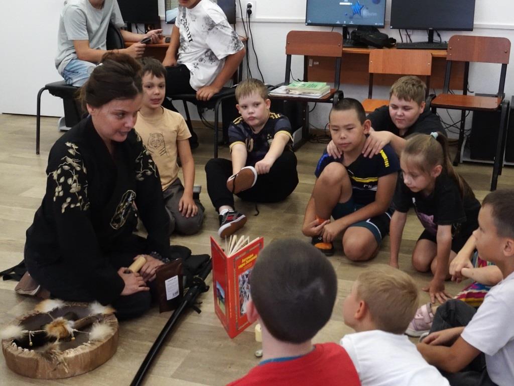 Ребята словно перенеслись в прошлое, оказавшись у костра под предводительством «шамана», который поведал им захватывающие легенды, аккомпанируя себе на бубне. Юные исследователи прикоснулись к богатому народному творчеству малых народов нашей страны.