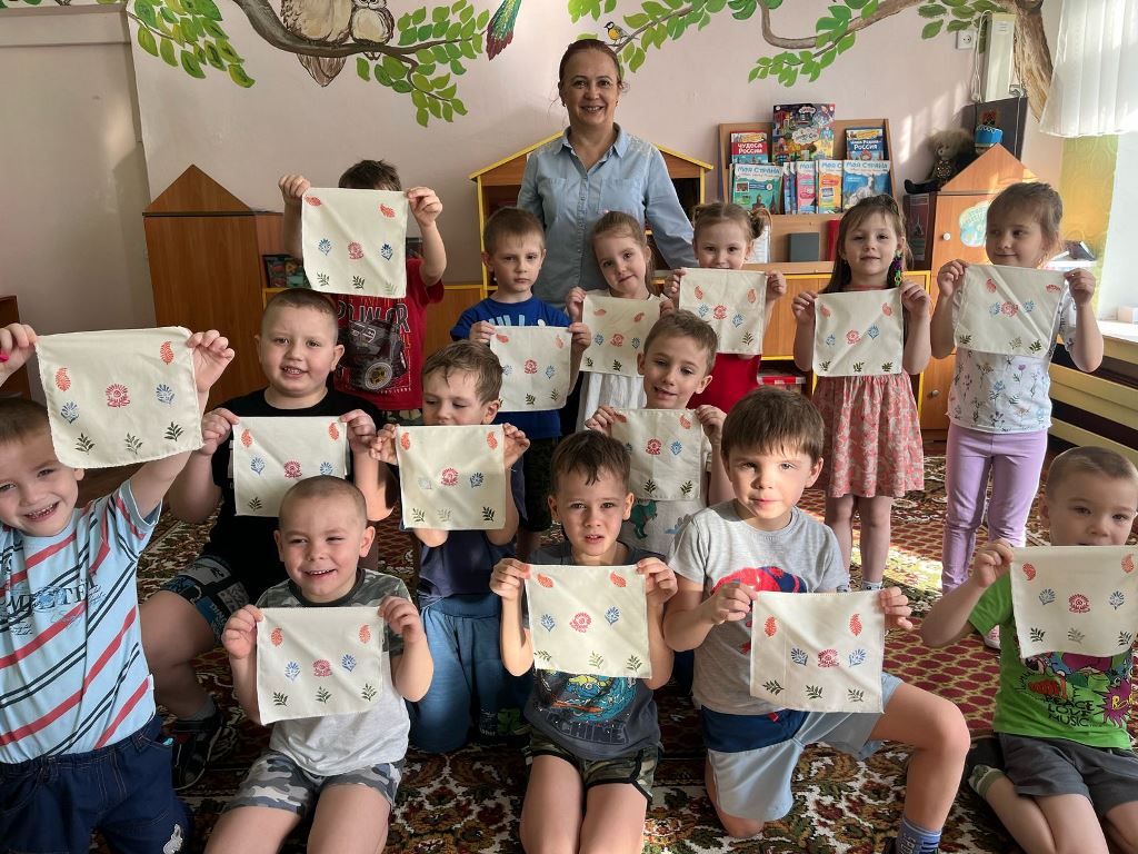 Мастер-класс «Мамин платочек» состоялся для воспитанников МБДОУ Детский сад № 46 «Золотой петушок» в рамках работы библиотечного кружка «Мастерская умелицы» и проекта «Гений места».