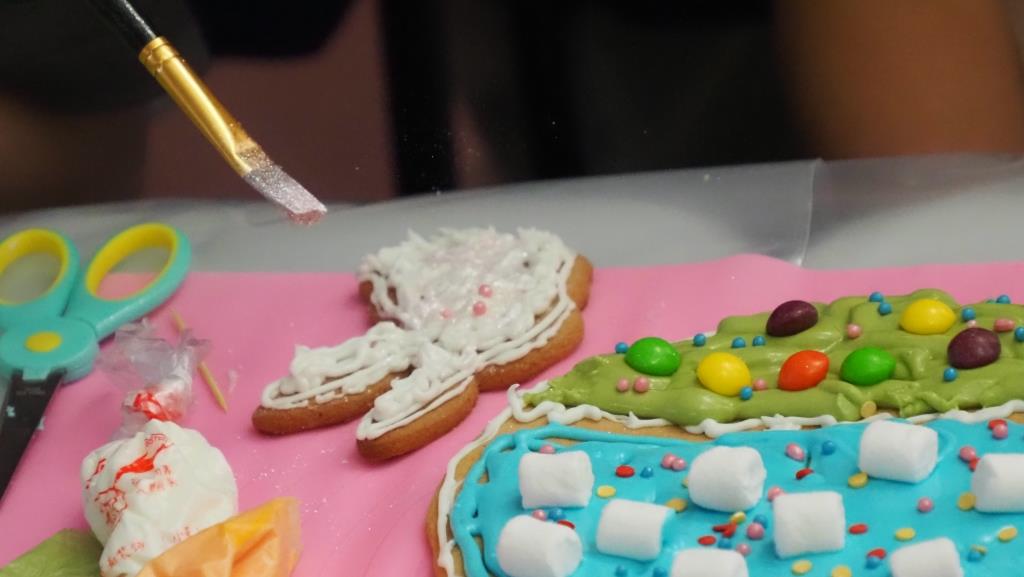 Круг – основа, колобок и зайчик – именно этих героев ребята поселили в свой сказочный пряник так, как они сами захотели и раскрасили свою съедобную картину своим воображением, используя глазурь и различную кондитерскую посыпку.