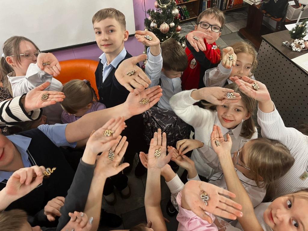 Библиотекари же в ответ подготовили для ребят особый творческий Новогодний подарок – мастер-класс по росписи деревянной игрушки в виде змеи – символа 2025 года. От библиотекарей ребята узнали, что в литературе образ змеи во многом олицетворяет трансформацию, мудрость и защиту, что делает её не только интересным персонажем, но и важным символом в культуре различных народов.