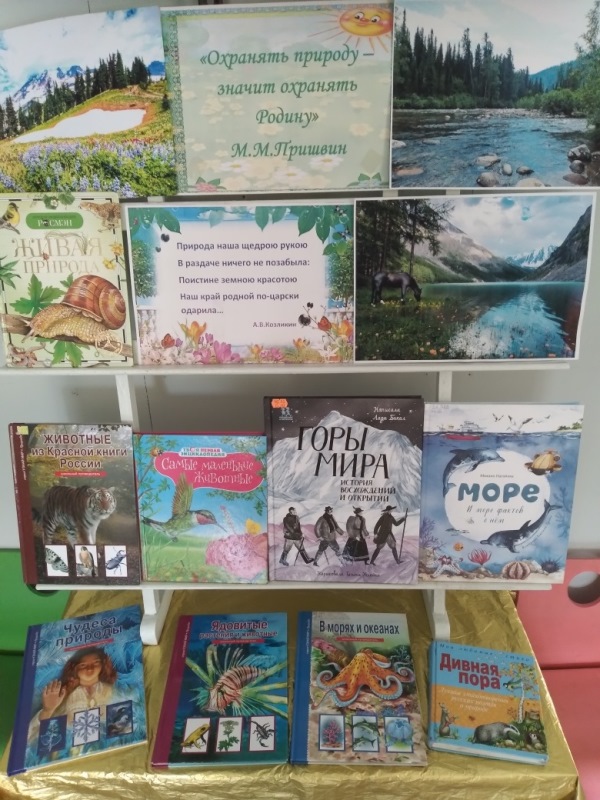 На выставке представлены книги, в которых описывается красота нашей природы, бережное отношение к природе.