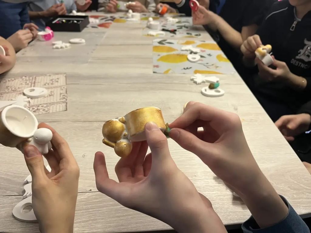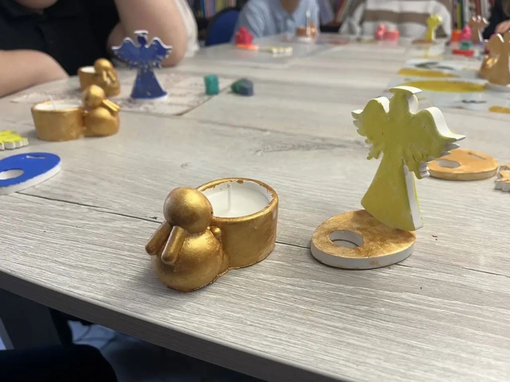 Мы с радостью принимали ребят из Муниципального казенного общеобразовательного учреждения «Основная школа «Коррекция и развитие». Вместе мы создавали пасхальные чудеса: дети с удовольствием заливали свечи в виде милых зайчиков и экспериментировали с техникой «спонжинг» – это особая техника покраски с помощью губки, которая позволяет добиться интересных текстур. Также появились трогательные ангелочки, которые будут украшать пасхальные столы.