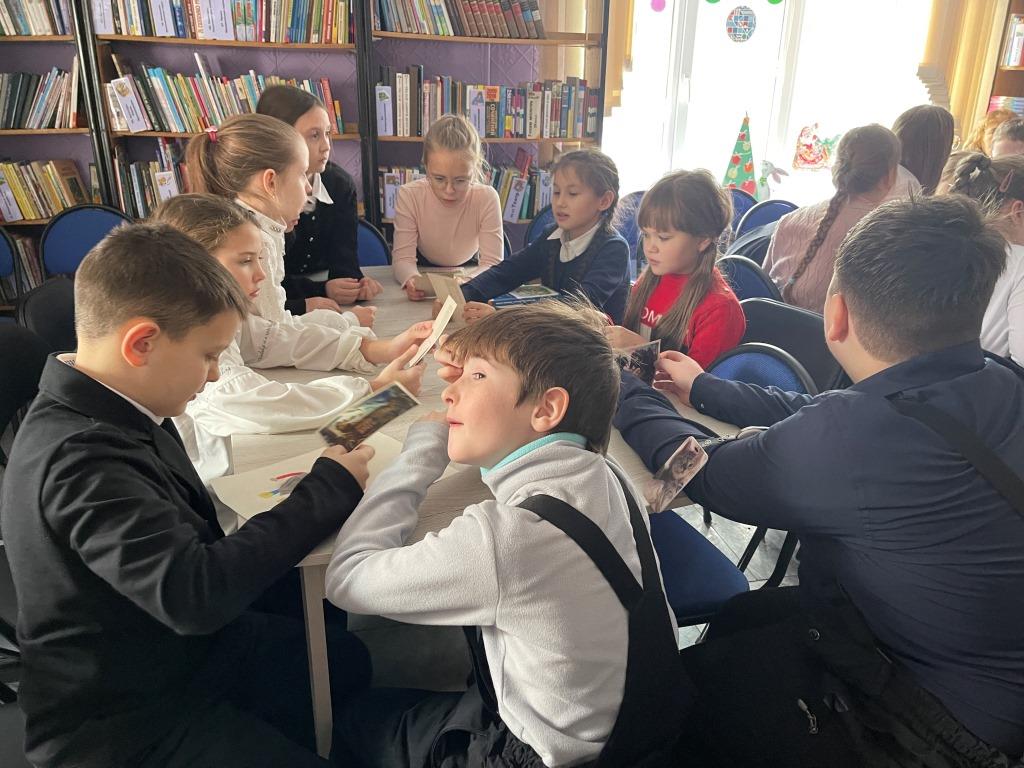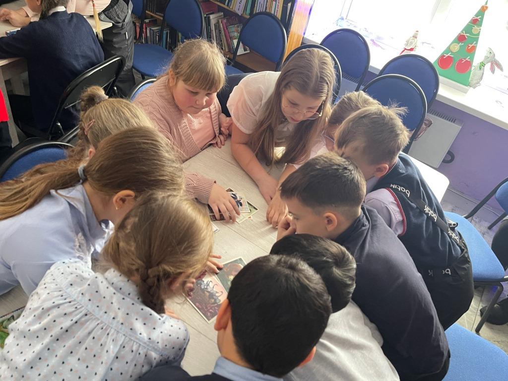 Дети должны были распределить открытки между собой и устно ответить на вопросы библиотекаря о том, какой сюжет изображен на открытке, где происходит место действия сюжета и кто запечатлён на нём. Если отвечающий не справлялся с ответом на вопрос, его могла поддержать команда, а если и команда отвечающего не знала ответа, то подключалась команда соперников.