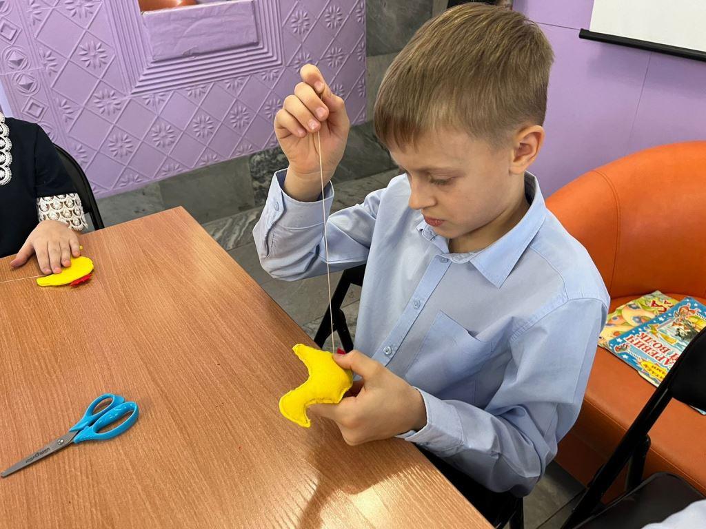 Завершением урока стал подарок – мастер-класс, на котором они самостоятельно сшили игрушку из фетра в виде гуся.